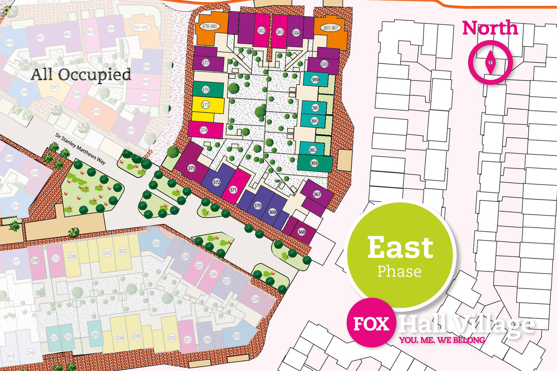 The 400 homes comprise two, three and four bedroom houses and apartments each with its own distinctive identity. These energy efficient homes nestle in green open spaces which are linked to the promenade and town centre via specially designed walkways and cycle paths.Home owners can also enjoy exclusive use of open spaces and purpose-built play areas within the Village, offering abundant room to play and relax in complete privacy. At Foxhall Village you will find a place that is yours to call ‘home’… a place where you, me, we belong.